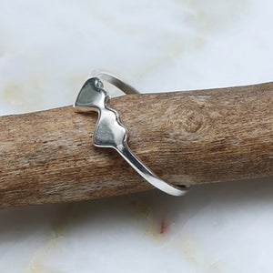 Formed from a single line of sterling silver, the band moves fluidly around the finger before meeting itself in a softened, sculpted join. The shape is intentional yet gentle, allowing the form to speak without interruption.