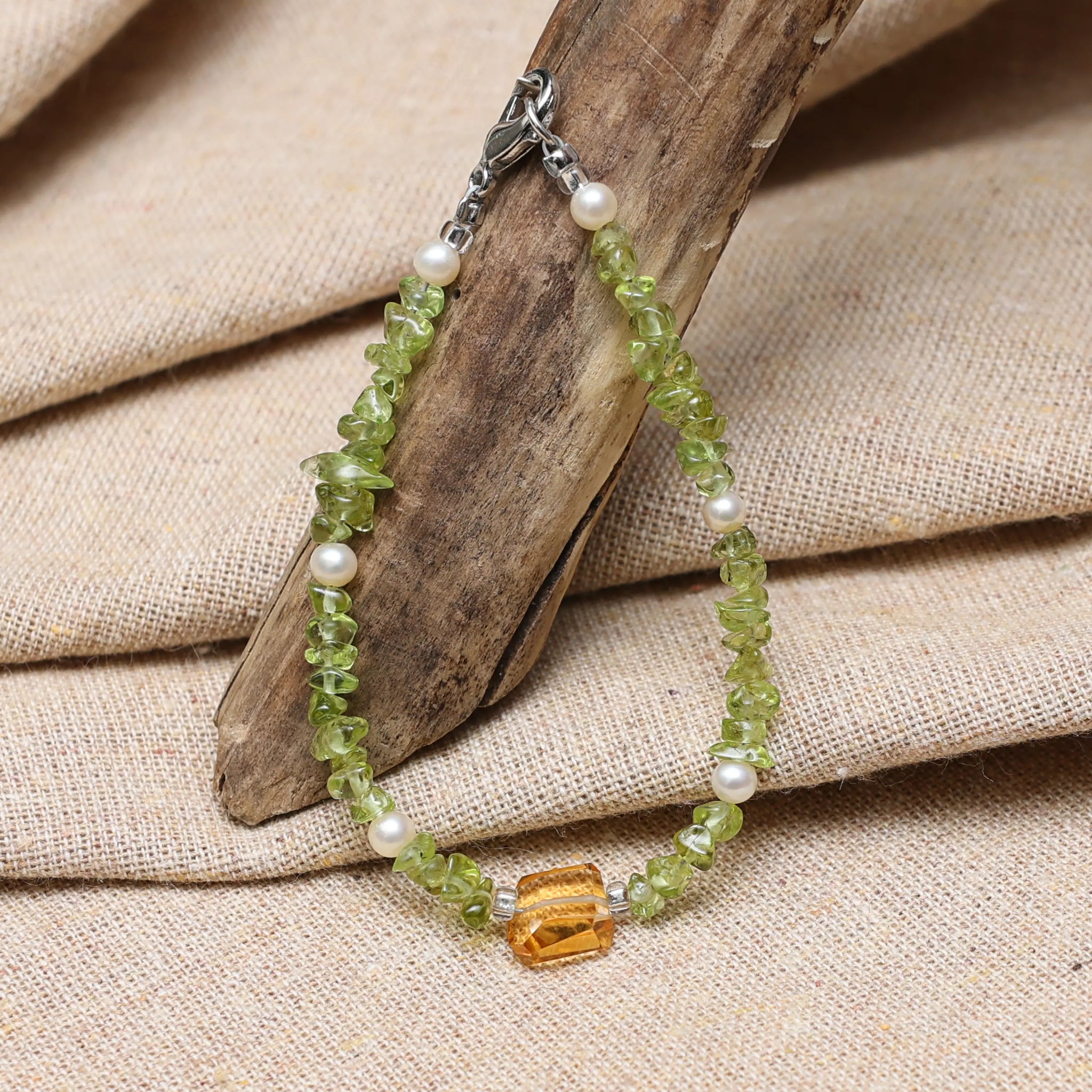 GEMSTONES: Prehnite, Pearl, Citrine (center stone)