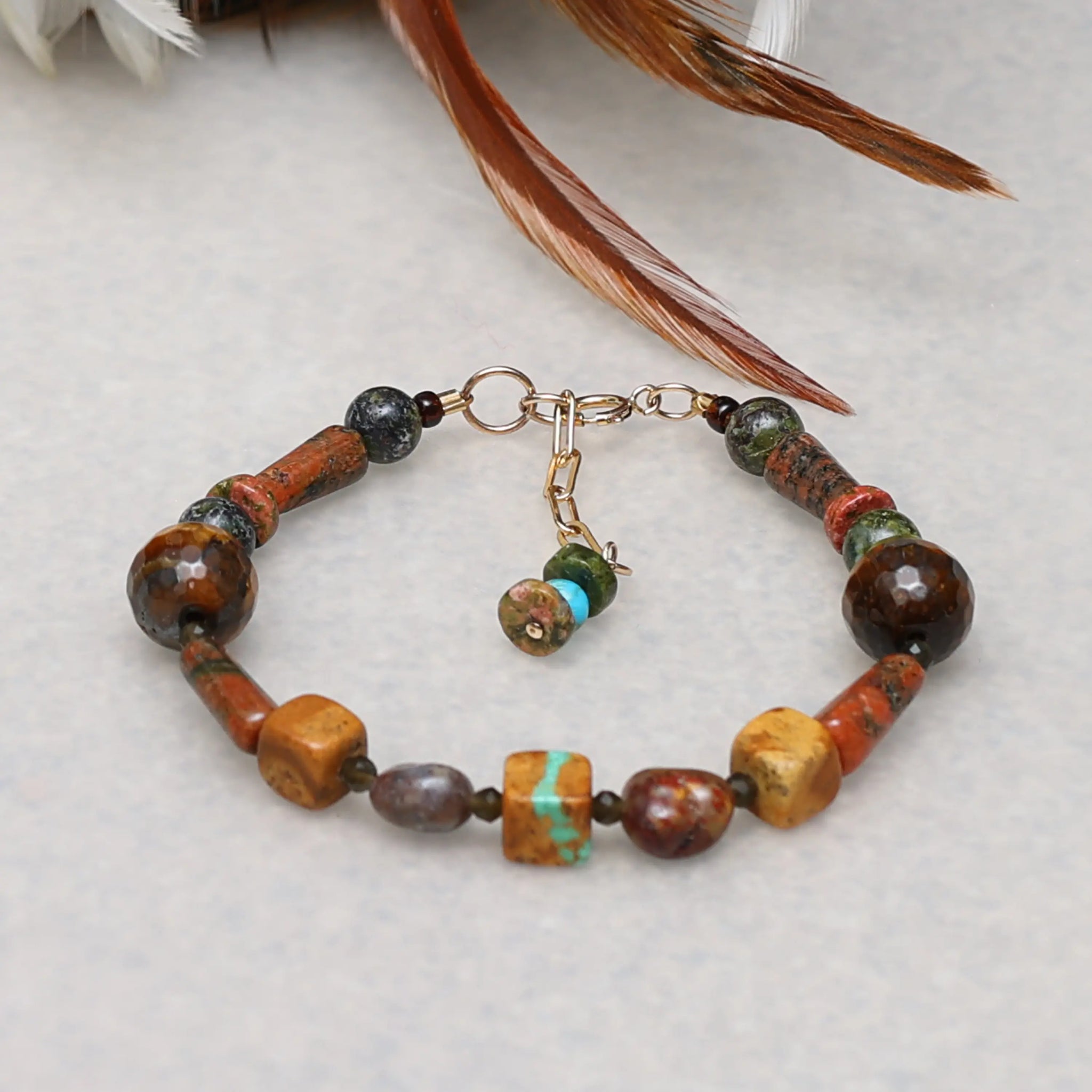 GEMSTONES: Unakite, Tiger Eye, Dragon's Blood Jasper, Pietersite, Roystone Turquoise, Cat's Eye Quartz