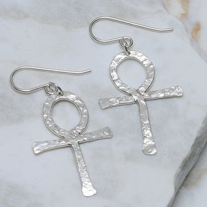 Anima Hammered Sterling Silver Ankh Earrings